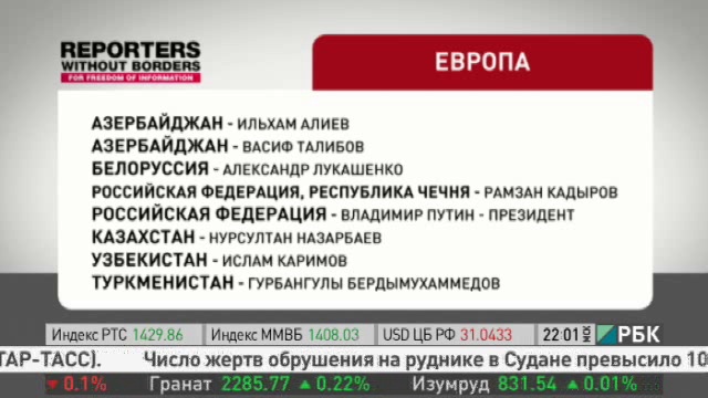 Международная неправительственная организация «Репортеры без границ» отмечает сегодня Всемирный день свободы прессы публикацией своего ежегодного списка врагов информации. В этом году в нем 39 глав государств, политических и религиозных деятелей и преступных организаций, которые «продолжают попирать свободу слова, с полным презрением и в условиях всеобщего безразличия».