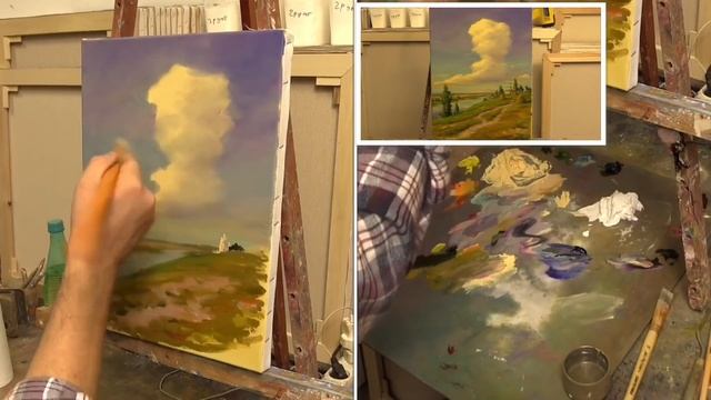 Облако над рекой. Этюд. The cloud over the river. Etude. Живопись маслом на холсте
