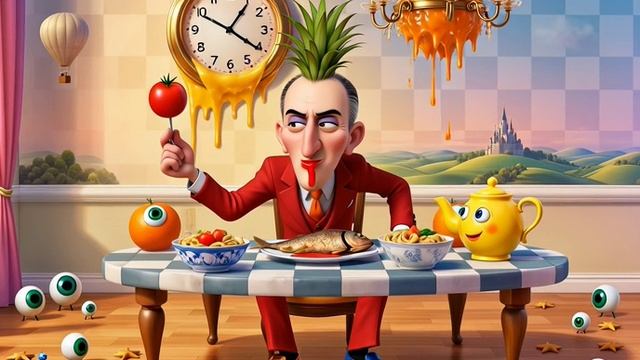 Название: Мой обычный завтрак в параллельной вселенной 🍳😵💫 Описание: Вы когда-нибудь ели рыбу с помидором, пока за вами наблюдают глаза на полу, а часы стекают со стены? Добро пожаловать в мой самый странный сон. Здесь чайники улыбаются, а вместо волос растет ананас. Досмотри до конца, если не боишься сойти с ума! Хэштеги: #сюрреализм #странноевидео #сон #безумие #анимация #параллельныймир #абсурд
