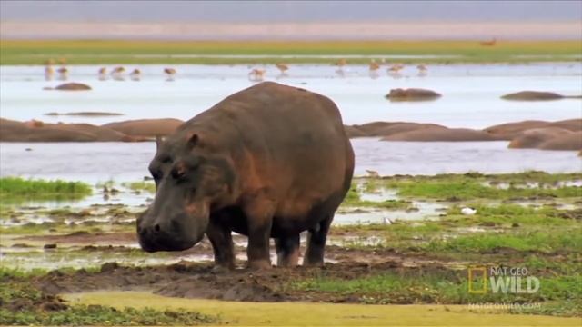 Кому не знаком облик этого животного: огромного, на первый взгляд, неповоротливого, часами сидящего в тёплой воде какой-нибудь спокойной африканской реки! Многие из нас, даже никогда не бывавшие в Африке, видели бегемотов своими глазами, ведь они легко приживаются в неволе, являясь частыми жителями зоопарков. Бегемоты нередко разевают свою пасть, и тогда все видят огромные клыки и зубы, в сравнении с которыми даже клыки льва кажутся игрушечными. Неужели такие страшные зубы нужны этим животным, чтобы питаться? И вообще, что едят бегемоты в природе? Перед тем как я расскажу зачем бегемоту его клыки и чем он питается-подпишитесь на канал-этим вы очень поможете Интересно заметить,что Биологи называют бегемотов гиппопотамами (Hippopotamus amphibius). Под этим названием животное известно в большинстве европейских стран и во многих других. Бегемотами их называют только в странах бывшего СССР. Мы начали свой рассказ с зубов. Логично предположить, что они нужны этим животным для питания, как у большинства представителей фауны. На самом же деле, это не так. Бегемоты — травоядные животные, и в этом они, действительно, близки к лошадям. Как и лошади, коровы, все парнокопытные, африканские исполины, чтобы поесть, вынуждены мирно щипать травку. Причём делают они это не зубами, а жёсткими губами, срезая сочную зелень под корень. Выясняя, чем питаются бегемоты, легко предположить, что их пища — сочная и обильная подводная растительность. Но думать так было бы совершенно ошибочно! Бегемоты пасутся только на суше, в воде они просто отдыхают, прячась от африканского зноя А вечерами, когда наступают сумерки, массивные туши бегемотов показываются из воды. Животные идут на кормёжку. Стадо бегемотов, выйдя на свой «ужин», проводит на суше всю ночь, с рассветом возвращаясь в свой водоём. Замечено, что иногда они уходят от реки на несколько километров. Как ни странно, бегемоты, при их кажущейся неповоротливости, способны быстро бегать. Во всяком случае, человека они настигают без труда, являясь, по мнению коренных жителей материка, самыми опасными животными Африки. Взрослый бегемот съедает за ночь около 50 кг травы, что совсем немного в сравнении с его весом (до 4 тонн). Это объясняется тем, что у них невероятно длинный кишечник, и трава, не в пример другим травоядным, способна перерабатываться почти полностью. А для чего же бегемотам такие большие зубы? Ответ прост: «Чтобы драться!». Эти животные, особенно самцы, большие драчуны, часто выясняющие отношения друг с другом. Кроме того, нередко бегемотам не хватает минеральных веществ, и они, подобно бульдозерам, срывают верхний слой почвы, поедая её. Это делается в тех местах, где почва солёная. Интересно, но существует много свидетельств, что иногда едят бегемоты в природе и падаль, а также изредка нападают на животных в реках. Учёные склонны считать, что делают они это не столько из-за мяса, столько, опять же, для пополнения запасов солей и минералов. Наверное, в такие минуты бегемотам также помогают их огромные зубы