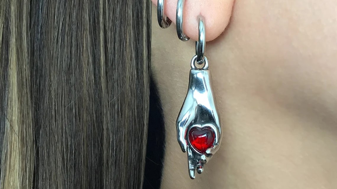 Серьги-конго cо съемными подвесками "Сердце в ладони" от StarfallShop с высокой степенью детализации, инкрустированные красным искусственным камнем в форме сердца. Трендовые серьги конго доступны для заказа как одиночная серьга по арт. 108744398 (WB), 736079510 (Ozon) и как парные серьги по арт. 108740704 (WB), 736073611 (Ozon).