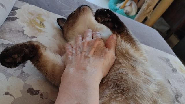 Кошка Зайка очень любит погладиться