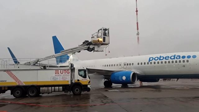 Обработка самолета от обледенения в полете Внуково