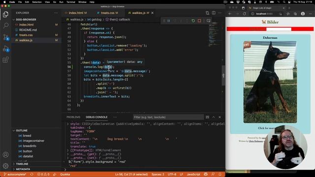 10 Minuten Webentwicklung von Anfang bis zum Ende in Visual Studio Code: 00:00 Was braucht man und warum? 00:53 Ordner und Applikation öffnen 01:16 Lokalen Server starten (CMD+`) 02:09 Ein Browser für die App 03:37 Console.log() in VS Code! 04:48 Breakpoints sind nicht so schwierig 06:01 Edge Developer tools in VS Code: DOM, HTM, CSS und Netzwerk 08:24 Und das Ganze automatisch Resourcen: Christian Heilmann https://christianheilmann.com Twitter: https://twitter.com/codepo8 https://twitter.com/EdgeDevTools Microsoft Edge: https://microsoft.com/de-de/edge Visual Studio Code: https://code.visualstudio.com Demo App "Dog Browser": https://codepo8.github.io/dog-browser/ Demo App "Dog Browser" how to: https://christianheilmann.com/2020/10/29/writing-a-dog-picture-browser-in-200-lines-of-code/ Reload server: https://www.npmjs.com/package/reload Edge DevTools extension für VS Code: https://aka.ms/devtools-for-code Dokumentation: https://docs.microsoft.com/en-us/microsoft-edge/visual-studio-code/microsoft-edge-devtools-extension