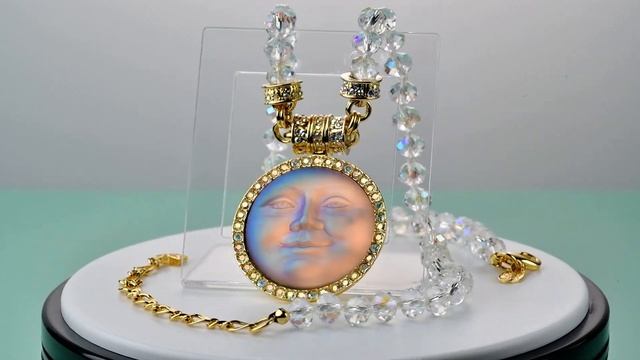 На видео представлено колье с тёмной луной на бусах