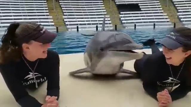 Девушки целуются с дельфином!)))