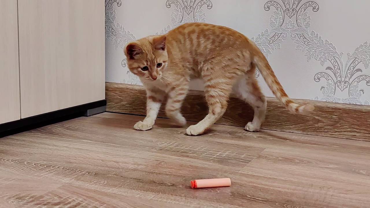 Котенок потерял игрушку.