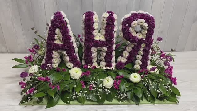 Объёмное имя из живых цветов - кустовых хризантем, изготовленное на флористической губке с водой. Детальнее о товаре 👉 https://ranunculus.ru/tsifry-iz-tsvetov/obemnoe-imya-iz-khrizantem/ Смотрите также: Буквы и цифры из живых цветов 👉 https://ranunculus.ru/tsifry-iz-tsvetov/ Наш интернет-магазин 👉 https://ranunculus.ru