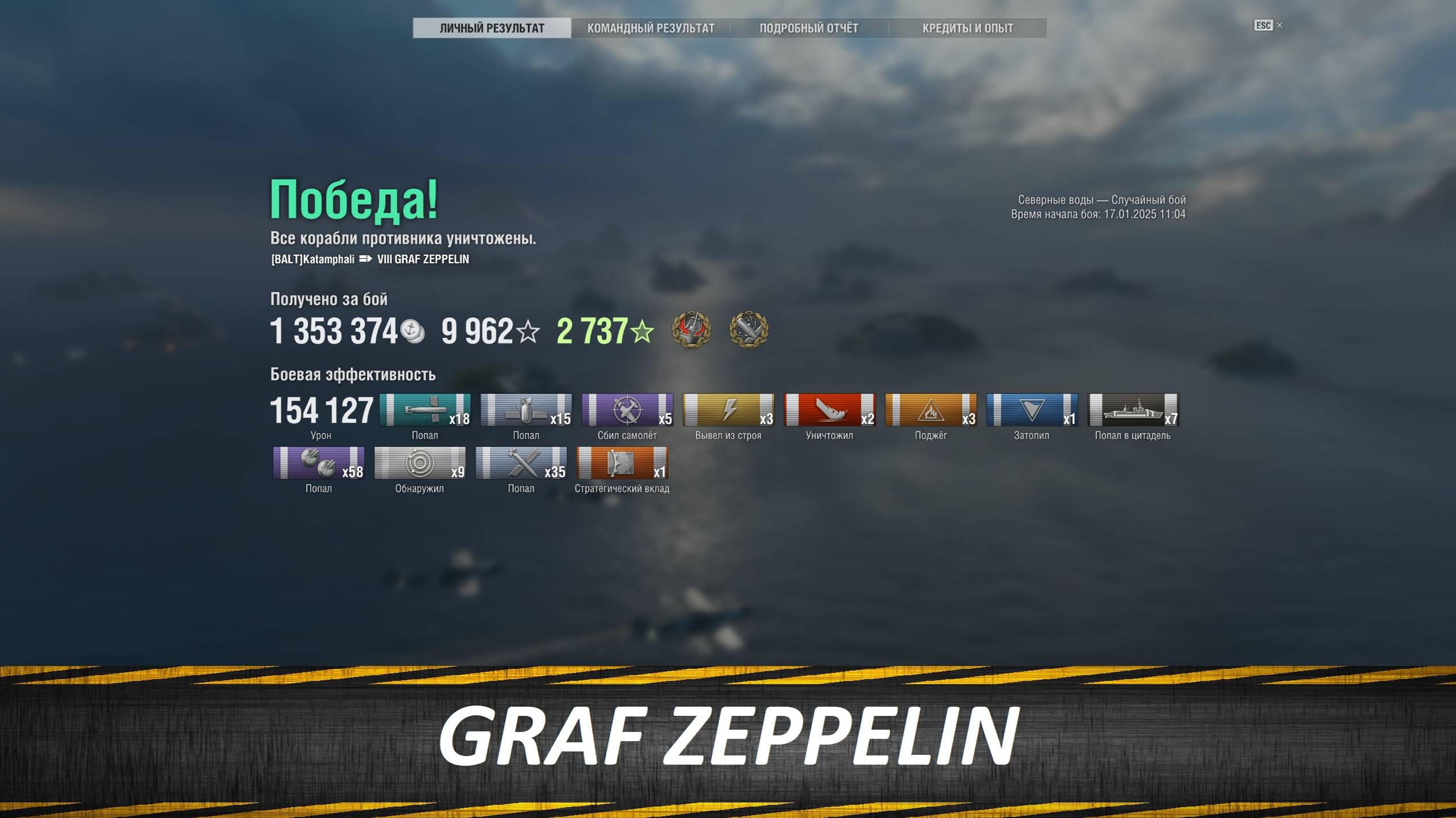 GRAF ZEPPELIN, 154 127 урона, 2 уничтоженных, 2 награды