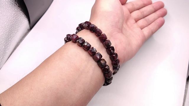 Браслет из бусин: Гранат (пироп-альмандиновый ряд). На резинке. 100% Природный камень, без облагораживания. Место добычи - Африка. Гранёные кубы: 8,5 х 8,5 мм. На запястье в обхвате: 1) - 16 см 2) - 16 см Б53