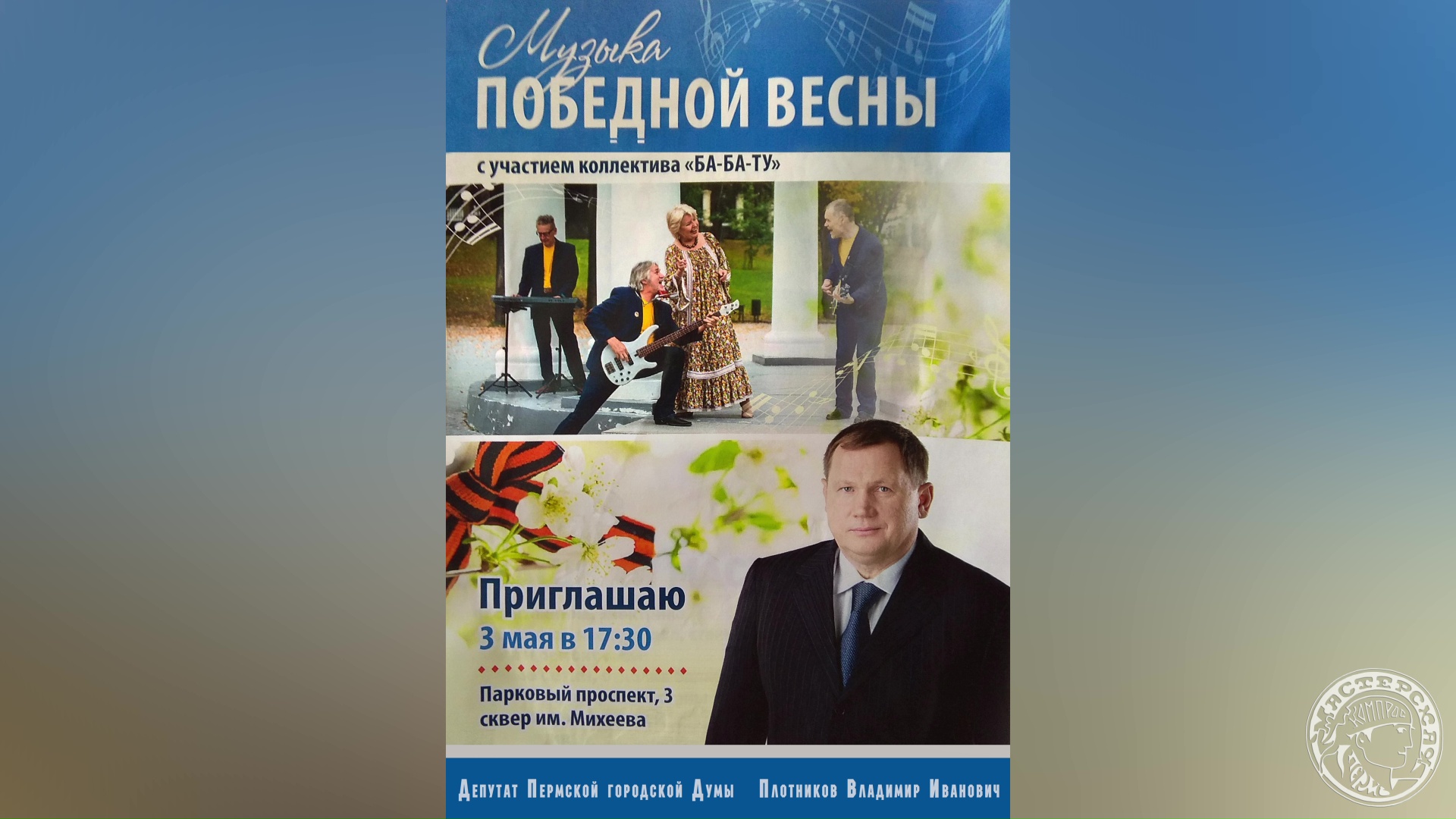 #Пермь #городскойконцерт #музыкапобеды #бабату Накануне Дня Победы музыкальный подарок жителям города от коллектива "БА-БА-ТУ" и депутата Пермской городской Думы Владимира Ивановича Плотникова.