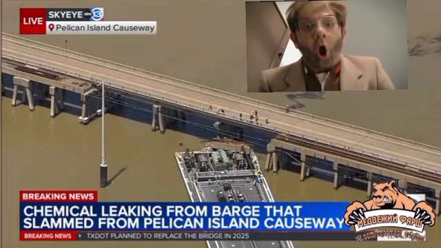 Баржа врезалась в мост на острове Пеликан в Галвестоне, штат Техас, в результате чего