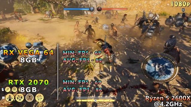 RX VEGA 64 8GB vs RTX 2070 8GB | AMD Ryzen 5 2600X @4.2GHz | 1080p 1440p 4K Benchmark #RXVEGA64 #RTX2070 #RXVEGA64_vs_RTX2070 #Ryzen52600X #fortnite #apexlegends Games those are tested listed below : project cars 2 gta v (grand theft auto 5 / gta 5) assassin's creed origins (ac origins) battlefield V (battlefield 5) metro exodus assassin's creed odyssey (ac odyssey) world war z fortnite far cry new dawn rainbow six siege apex legends System Specs : Operating System : Windows 10 Pro 64 Bit CPU : AMD Ryzen 5 2600X @4.2GHz (Asus X370 PRO) GPU 1 : AMD Radeon RX VEGA 64 8GB 1740MHz GPU 2 : NVIDIA GeForce RTX 2070 8GB 1810MHz CPU Cooler : Corsair H100i RGB Platinum 240mm AIO Liquid Cooler PSU : Cooler Master V1000 SMPS RAM : Corsair Vengeance RGB Pro Series 2*8GB DDR4 3000MHz Thank You for watching........please hit the thumbs up button and share if you like it and also please subscribe to my channel as this will motivate me and help me to make more videos like this.......