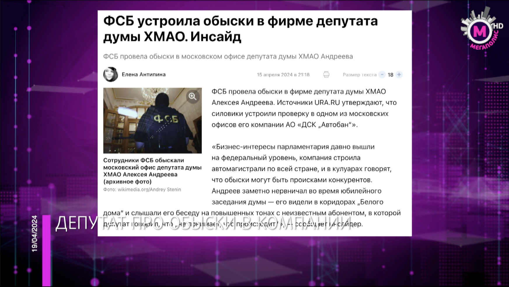 Мегаполис – Депутат про обыски в компании – Югра