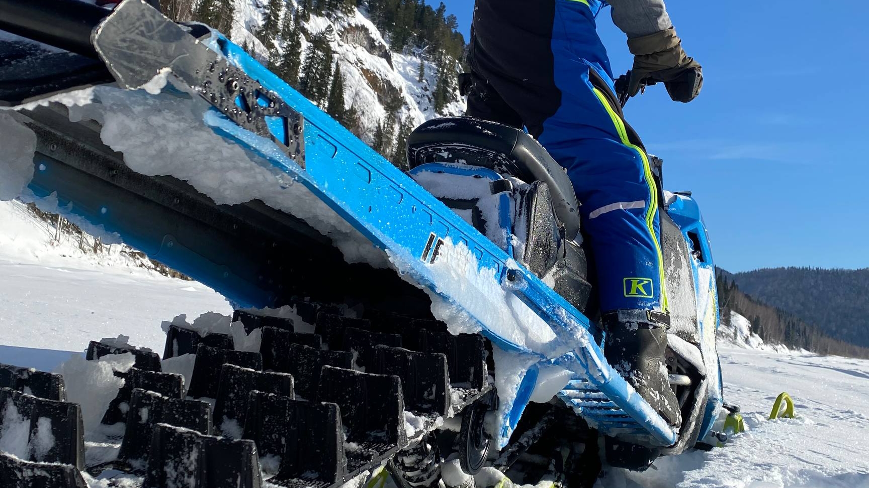 Первый выезд после утиля на горном снегоходе.