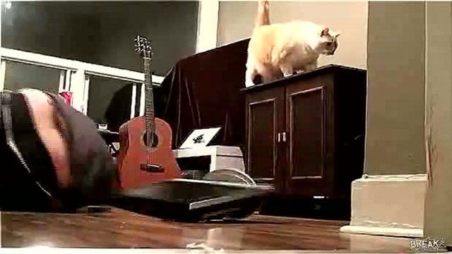 Кот уронил телек на хозяина