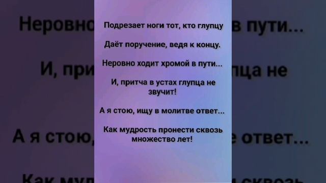 ХРИСТИАНСКИЕ ПЕСНИ ДЛЯ ХВАЛЫ ПОКЛОНЕНИЯ ПРОСЛАВЛЕНИЯ ЕВАНГЕЛИЗАЦИИ ДУХОВНОГО РОСТА ПРОБУЖДЕНИЯ ВОЗРОЖДЕНИЯ #господь#музыка#христианская_музыка#музика#христианскиепесни#бог#христианскиестихи#любовь#христианство#стихи#песня#песни#иисус#иисусхристос#иисусмойбог#иисус_христос#иисусбог#иисусгосподь#хвалы_и_поклонения#хваление#хвала#прославление#духсвятой#духовныйрост#духовноепробуждение#духовность#евангелие#евангелизация#евангельскаявесть#духовный_рост#пробуждение#рождество#рождествохристово#божий#божийнарод#божьеслово  #ХристианскаяПесня #ХристианскоеПоклонение #ХристианскаяНоваяПесня #ПастырьМоейДушы #ХристианскаяМузыка #ПесняСлавы #Иисус #ЛюбовьБожья #ХристианскиеТексты #СлаваГосподу #ВераИПоклонение #ВечнаяЛюбовь #RussianChristianSong #RussianChristianWorship #RussianChristianMusic #RussianWorship #NewRussianChristianMusic  #RussianChristianMusic #RussianSongOfPraise #Jesus #GodsLove #ChristianLyrics #GloryToGod #RussianFaithAndWorship #EternalLove #Пасха #Воскресение #ХристосВоскрес #пробуждение #возрождение https://stihi.ru/avtor... "МУДРОСТЬ СВЫШЕ!" СЛОВА, МУЗЫКА, ОБРАБОТКА:  ЖАННА ВОЛКОВА-ВАРЛАМОВА https://stihi.ru/2025/... Стихи Жанна Юрьевна Волкова-Варламова Вступление: Как снег летом...  Как дождь в жатву...  Так глупому честь - Пустая клятва! 1 Куплет Слова, как стрелы, летят на ветер...  Не оставляя следа на свете!  Но ложь, как яд, разъедает душу...  И, мир вокруг лишь делает хуже!  Припев: Мудрость сходящая свыше...  Тише падает, чем снег на крыши!  Глупый её не заметит, не услышит...  А, мудрый сердцем всё запишет!  2 Куплет Как воробей взлетит, как ласточка умчится...  Так проклятье ложное не сбудется, оно растворится!!!  Бич для коня, узда для осла...  А, для глупых - палка,  Чтоб мудрость взошла!  Припев: Мудрость сходящая свыше...  Тише падает, чем снег на крыши!  Глупый её не заметит, не услышит...  А, мудрый сердцем всё запишет!  3 Куплет Не отвечай глупцу по глупости его...  Чтоб не стать подобным для него самого!  Но ответь глупцу по глупости опять...  Чтоб мудрецом себя не смел считать!  Учись смирению, но мудрость сохрани...  Заповеди Божьи в сердце соблюди!  Бридж Подрезает ноги тот, кто глупцу Даёт поручение, ведя к концу.  Неровно ходит хромой в пути...  И, притча в устах глупца не звучит!  А я стою, ищу в молитве ответ...  Как мудрость пронести сквозь множество лет!  Припев: Мудрость сходящая свыше...  Тише падает, чем снег на крыши!  Глупый её не заметит, не услышит...  А мудрый сердцем всё запишет!  4 Куплет Как пёс к блевотине своей возвращается...  Так глупый в глупости повторяется!  Видал ли мудрого, что в собственных глазах велик?  Надеяться можно больше на глупого, когда он к мудрости приник!  Но если гордость ум застилает...  То даже мудрость тогда убегает!  Припев: Мудрость сходящая свыше...  Тише падает, чем снег на крыши!  Глупый её не заметит, не услышит...  А мудрый сердцем всё запишет!  5 Куплет Она не кричит, не шумит на базаре...  Не требует славы, не просит наград!  Она в тишине, в смиренном угаре...  В душе, что готова внимать и прощать!  Ищи её в сердце, а не в суете...  Ищи её в кротости, в чистоте!!!  Финальный припев: Мудрость сходящая свыше...  Тише падает, чем снег на крыши!  Где нет наушника - раздор утихает...  Где нет дров - огонь угасает!  Заключение: Лживый язык ненавидит уязвлённых...  А, мудрость свыше спасает смирённых!  11.08.2025