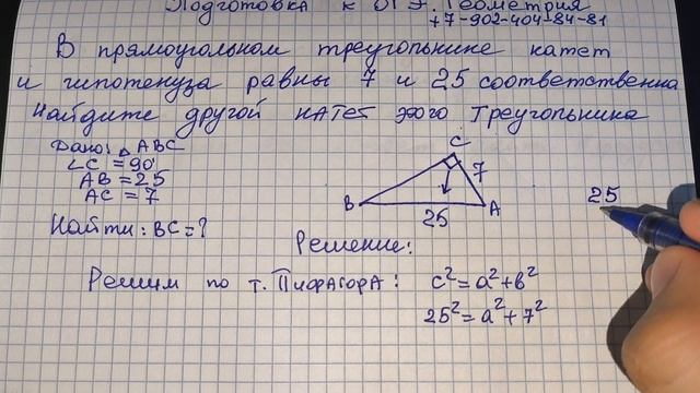 ОСНОВЫ ГЕОМЕТРИИ. Геометрия 7 класс. Теорема Пифагора