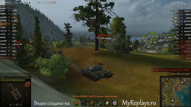 World of Tanks (WOT) Победа Бой игрока pit_11 на танке Type 59 01 ноября 2012 года в 20:57 Карта: Тихий берег Получено опыта: 1717 Получено кредитов: 104970 Карточка боя: http://www.myreplays.ru/rt/8bc83231-3629-218c-4210-5092b008ce9b Если хотите такое же видео из своего боя, скидывайте реплей на электронный адрес wot@myreplays.ru В течение 5 минут получаете доступы в систему и ссылки на статистику своего боя, через некоторое время получаете ссылку на видео. Все подробности на http://www.myreplays.ru или на официальном форуме игры http://forum.worldoftanks.ru/index.php?/topic/454521-myreplaysru