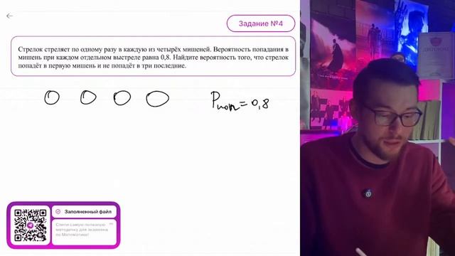 Стрелок стреляет по одному разу в каждую из четырёх мишеней. Вероятность попадания-№12017