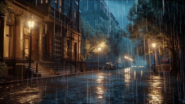 Звуки дождя на пустой улице ночью — 1 час