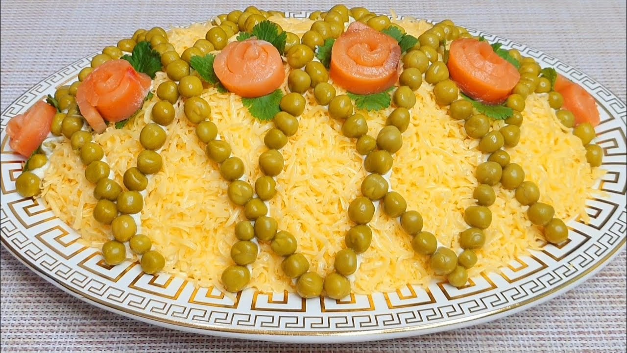 Спасибо за уделённое время❗ БУДЬТЕ ЗДОРОВЫ ? Рецепт: Горбуша консервированная 1 банка Яйцо отварное 3шт Картофель отварной 2шт Морковь отварная 2шт Сыр 120гр Лук зеленый 1/2 пучка Соль по вкусу Майонез 2-3ст.л Для украшения горох зеленый Рыба красная