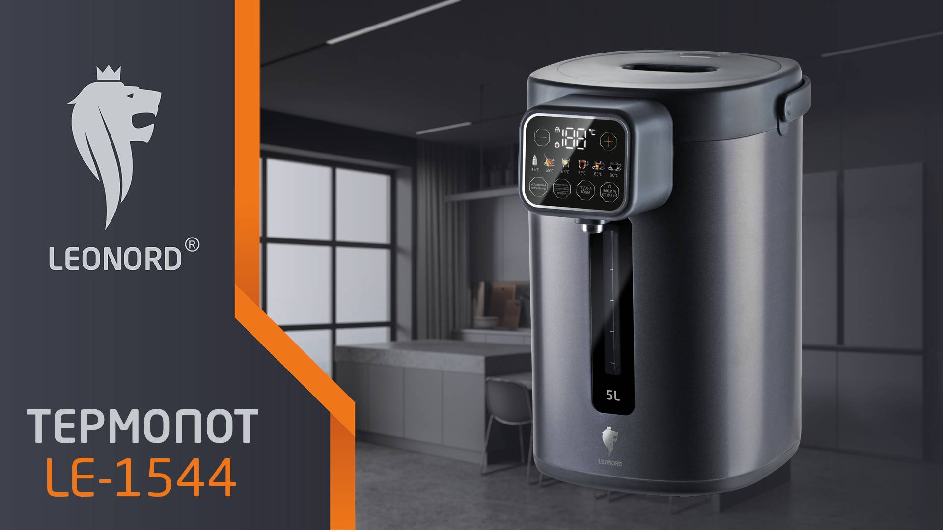 Термопот Leonord LE-1544 (5 л, 1600 Вт) тёмно-серый