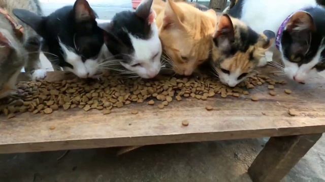 Много котов кушают вкусную еду) Лавочка котов