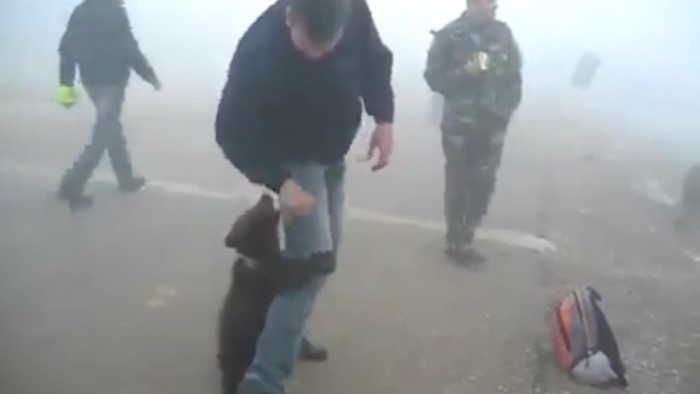 Маленький мишка играется с парнем