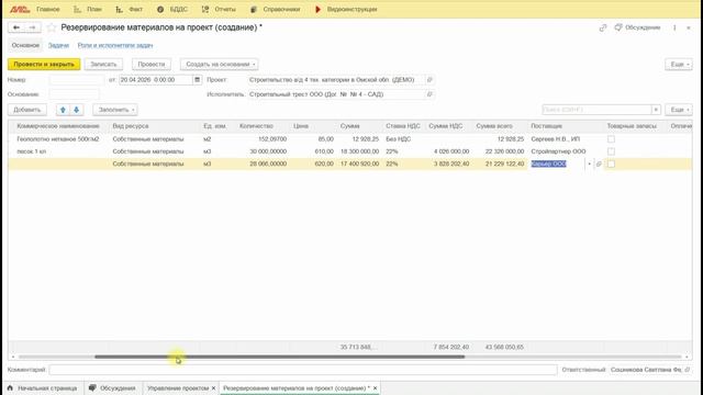 6. 2. Создание документов Резервы материалов