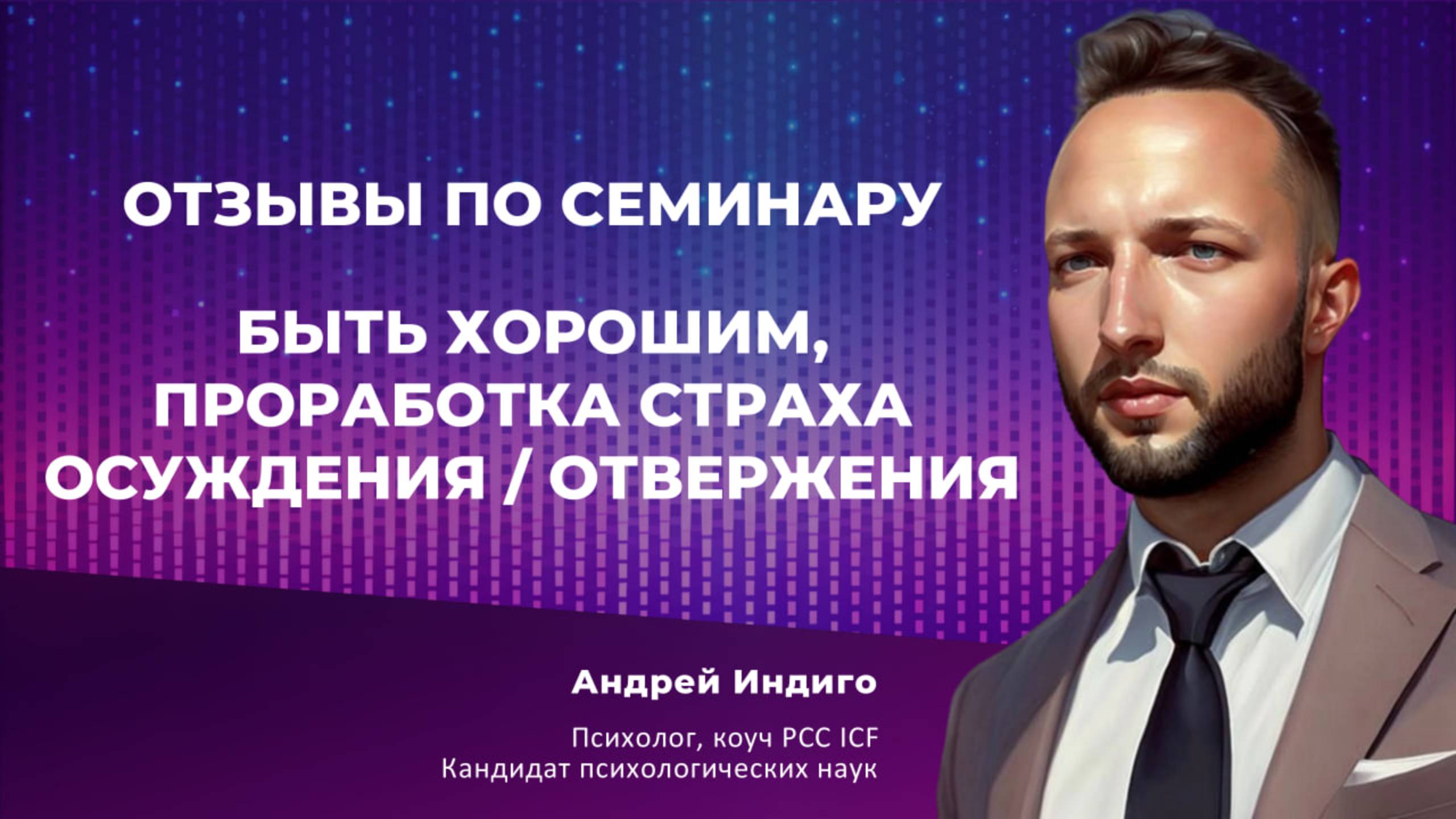 Ссылка на семинар "Быть хорошим, проработка страха осуждения, отвержения"- https://andreyindigo.com/seminar1 Записаться на личную диагностическую сессию к Андрею: https://andreyindigo.com Закрытая группа "Практика на миллион" для психологов и коучей: https://t.me/+hlCZO6w-hBoyZTYy Подписывайтесь на мои социальные сети: Телеграм: https://t.me/AndreyIndigo INST: https://www.instagram.com/andrey.indigo/ ВК: https://vk.com/andrey.indigo