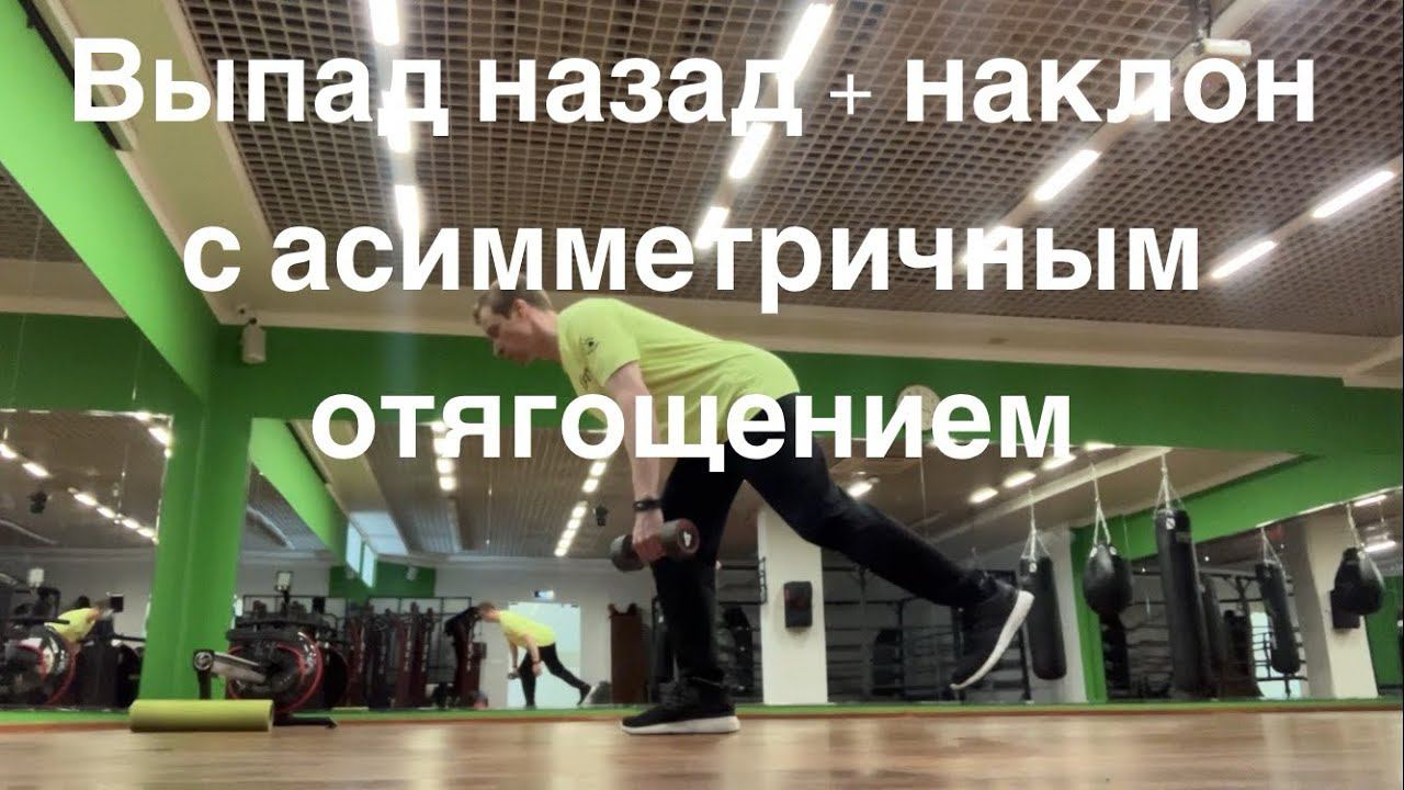 Выпад назад + наклон с асимметричным отягощением