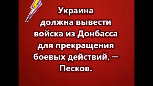 Украина должна вывести войска из Донбасса для прекращения боевых действий, — Песков.