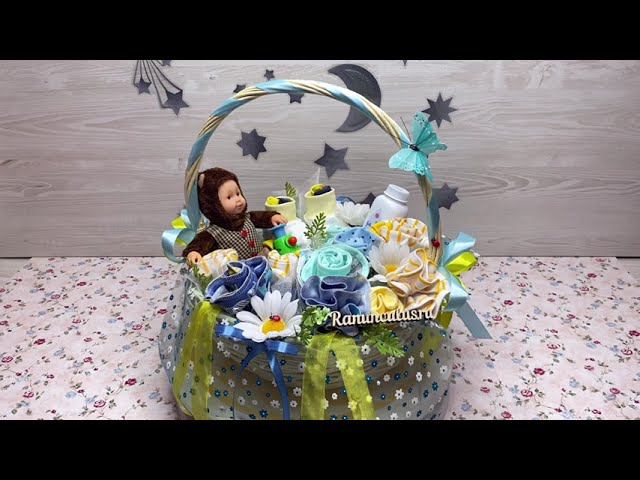 Букет из детской одежды в корзине