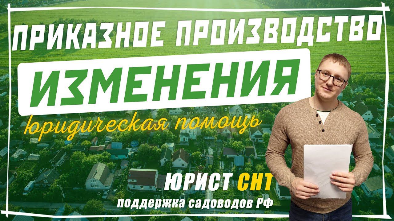 Дорогие друзья! Я получил большое количество сообщений по изменениям в приказном производстве. Сегодня мы подробно рассмотрим данный вопрос и как это повлияет на взыскание задолженности. ► https://youtu.be/DoCenPBWpRk - приказное производство ► О проекте: Твоё СНТ - это объединение профессионалов в области юриспруденции, бухгалтерии и IT, а так же председателей садоводческих товариществ и ассоциаций с многолетним опытом. Основной задачей проекта "ТВОЕ СНТ" является решение как повседневных, так и глобальных проблем садоводческих товариществ как на территории Московской области (их кстати более 11 000), так и за ее пределами. ► Юридическая консультация по СНТ: Сайт: https://tvoesnt.ru Тел.: 8(925)269-79-59 E-mail: tvoesnt@gmail.com ► Разработка сайтов для СНТ: Тел.: 8(991)113-33-31 #юрист #снт #председатель