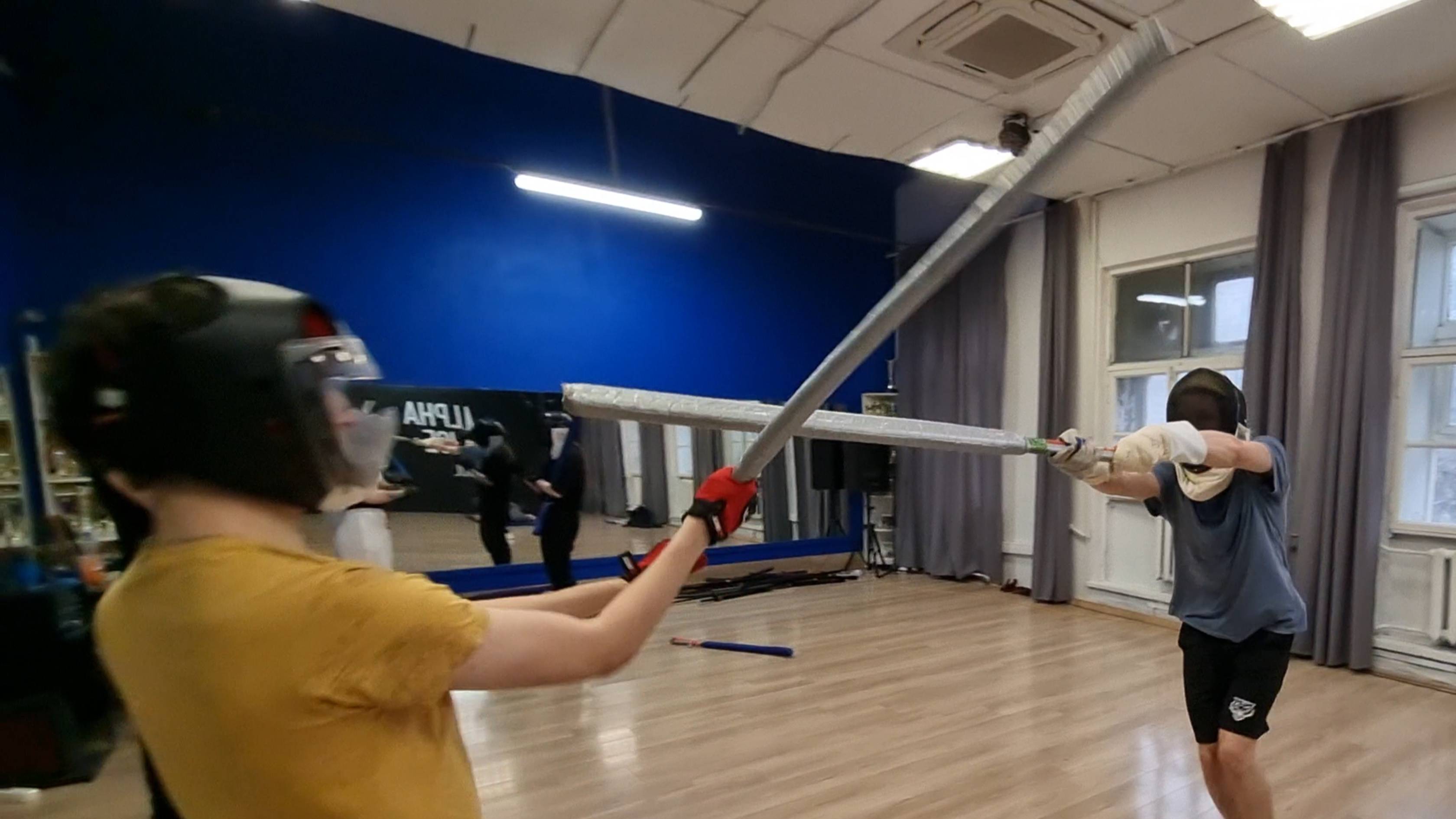 Спарринг на плоских двуручных японских мечах чанбара о-катана тёкен в школе кэндзюцу Katana Club