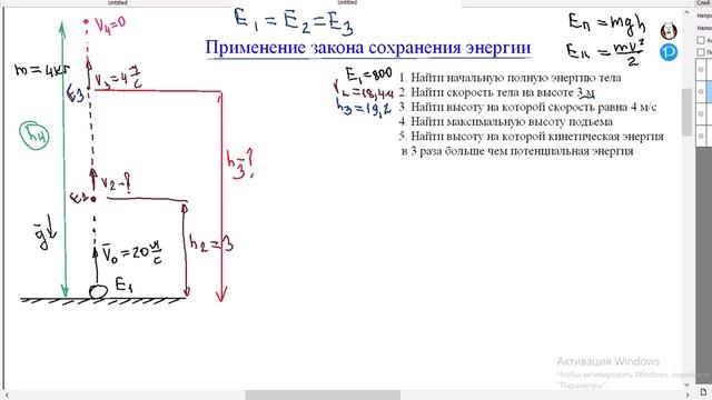 Рассматривается применение закона сохранения энергии на примере движения тела, брошенного вверх
