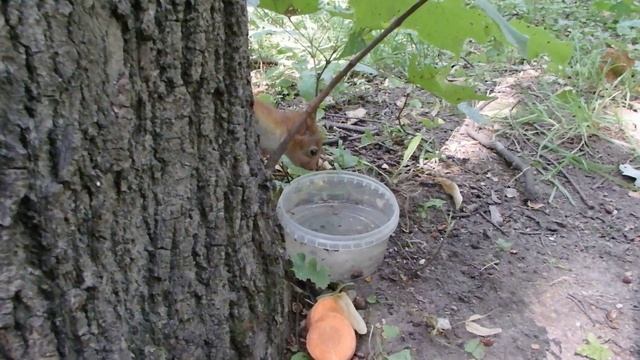 Совсем маленький бельчонок пришёл поесть орешков