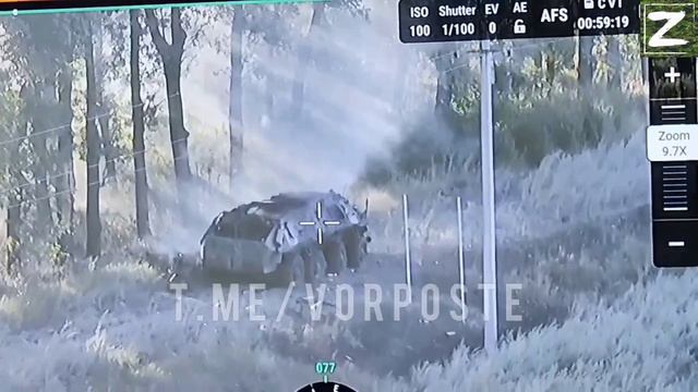 Эксклюзивные кадры уничтожения украинского БТР с подрывом БК на Харьковском направлении