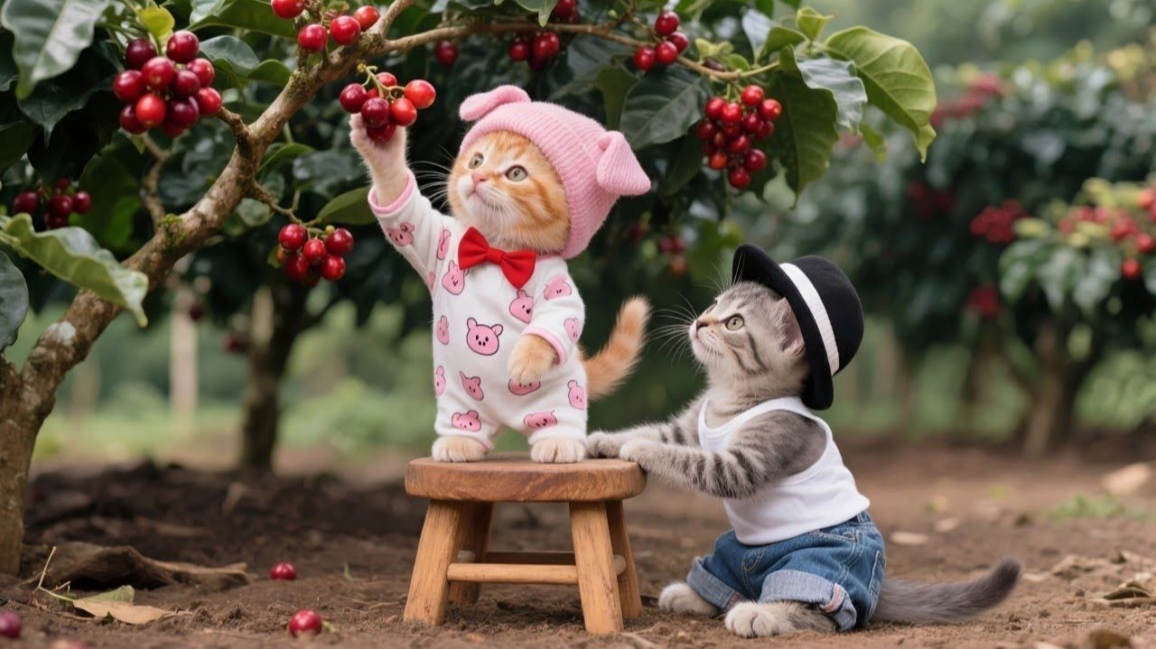 Очаровательные Рыжик и Майло отправляются собирать кофе с мамой-кошкой 🐱☕️💛