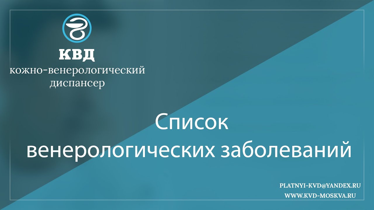 Запись на прием - https://kvd-moskva.ru (в верхнем левом углу) При приеме с 13:00 до 15:00 (любого дня) стоимость консультации 600 рублей (вместо 900). Венерологические заболевания – это группа инфекций, различные по причине и симптомам, объединенные по способу заражения – преимущественно половым путем. В настоящее время известно более 20 болезней, передача которых возможна половым путем. Подробнее: https://kvd-moskva.ru/venerologiya/156/ Цены - https://kvd-moskva.ru/tseny/ Врачи - https://kvd-moskva.ru/doctors/ Смотрите видео: Женские болезни - https://bit.ly/2WHUcgR Мужские болезни - https://bit.ly/2WGMFPt Анализы - https://bit.ly/2VEtGbB Лекарства - https://bit.ly/2VpMF4S Лечение и профилактика - https://bit.ly/2E3K7Dp Контрацепция - https://bit.ly/2LHvlZy Связаться с КВД-Москва: 8 (495) 642-30-37, 8 (495) 532-66-57 platnyi-kvd@yandex.ru http://kvd-moskva.ru Соцсети: https://www.instagram.com/kvd.moskva/ https://www.facebook.com/kvd.moskva