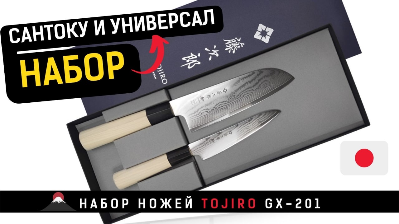 ? Обзор набора японских ножей серии Shippu (GX-201) от Тоджиро. ?Сталь Сталь VG-10 в обкладках из дамаска, рукоять Дерево, заточка 9000#