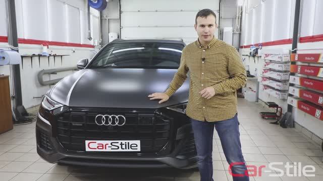 Audi Q8 полная оклейка матовым полиуретоном, тонировка и керамическая защита