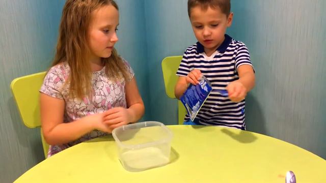 Валя и Миша делают слайм в первый раз / Слайм липучка или каша из слайма
