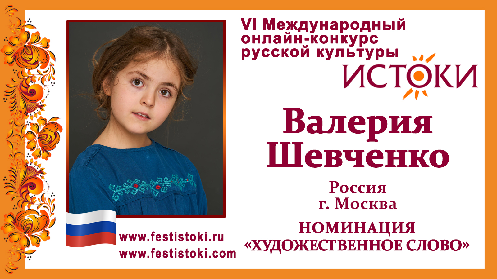 Участник VI Международного онлайн-конкурса русской культуры "Истоки". Номинация "Художественное слово". Отрывок из романа "Козетта". Автор Виктор Гюго. Сайт: www.festistoki.ru / www.festistoki.com E-mail: festistoki@mail.ru