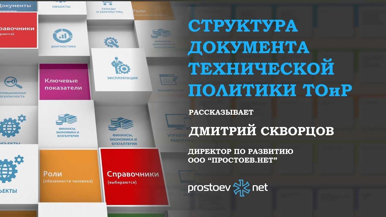 http://www.prostoev.net/ Простоев.НЕТ. Структура документа технической политики ТОиР. RCM. Надежность оборудования. Управление надежностью. Техническое обслуживание и ремонт. Надежность оборудования. Ремонт станков https://youtu.be/PElh1RKi1R0 Мы информационно-образовательный проект по вопросам организации управления процессами поддержания надежности, проведения технического обслуживания и ремонтов технологических систем и оборудования. _ Подписывайтесь на наш YouTube канал https://www.youtube.com/user/prostoevnet _ Тема сегодняшнего видео «Структура документа технической политики ТОиР». 00:00 prostoev.net 00:17 Структура документа технической политики ТОиР 00:30 Есть такие наблюдения, рекомендации, в каждой компании мы решаем отдельно, у кого какие пункты должны быть. Минимальный набор позиций такой. 00:45 Определение объектов управления. Первое, с чего обычно начинают, это определение объектов управления, то есть чем вы управляете: фабриками и пароходами, единицами оборудования, системами, узлами оборудования – то есть должен быть обозначен уровень детализации на уровне объекта управления. 01:10 Определение стадий жизненного цикла. Второй момент – это определение стадии жизненного цикла, то есть с какого момента вы начинаете управлять оборудованием: с момента его установки или начиная с заявки, определения функциональных требований к нему, проектирования. 02:15 Определение рисков. Внутри управления есть риск-ориентированный процесс, то есть методика оценки рисков должна быть доведена до уровня Политики. 02:30 Определение стратегии ТОиР. Следующий пункт – это стратегия, какой вид планирования у вас используется: по ОПР, по состоянию, по наработке, по циклам. Это должно быть определено на уровне Политики. Какие виды стратегии применяются в компании, какие из них приоритетные, какие критерии выбора. 02:52 Технологии поддержания и восстановления исправного состояния. Поскольку мы говорим об оборудовании, всем нашим инженерам и сервисникам хочется увидеть наши тренды, какие технологии мы будем использовать для поддержания оборудования в исправном состоянии. 03:52 Планирование и организовывание работ. Следующий пункт – это описать, как мы разделяем этап планирования работ и организовывания. Очень тонкая грань. Есть годовое, ежемесячное планирование, а есть недельное и ежесменное. Так вот планирование это больше годовое, где определяются необходимые для этого плана работ ресурсы, организация – расстановка людей по бригадам, по сменам, по точкам выполнения работ. В западных компаниях это очень четко разделяется, и это в Политике нужно описать. 04:39 Инструменты управления бизнес-процессами. Отдельный раздел в наших шаблонах – это инструменты управления бизнес-процессами, то есть правила описания процессов, глубина детализации, ключевые показатели процессов. 04:59 Обеспечение ТМЦ. Отдельно тема обеспечения ТМЦ. Все механики говорят, что это черный ящик, но мы должны понять, насколько он черный, хотим ли мы видеть прозрачность, либо заявка на поставку является конечным элементом нашей системы управления, где мы просто требуем и потом просто получаем. 05:20 Управление информацией. И последний пункт – это управление информацией. То есть все наши данные по оборудованию, нормативы, данные по надежности истории работ – это все информация, она должна направляться, поддерживаться, и в Политике 