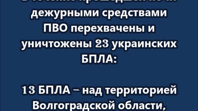 ПВО перехвачены и уничтожены 23 украинских БПЛА
