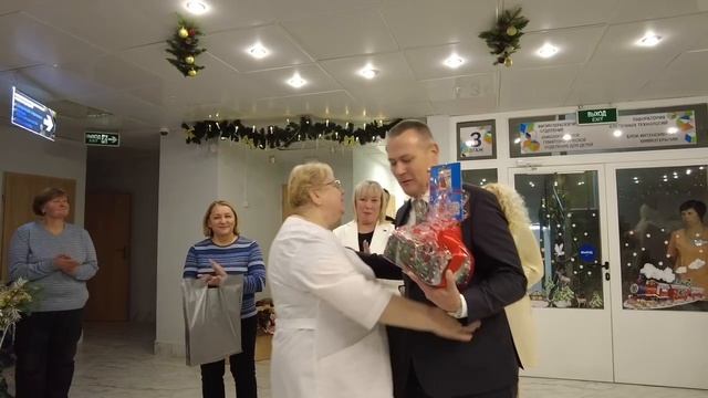 Вот уже двенадцатый год подряд, в преддверии новогодних праздников делегация УВД Гомельщины с благотворительной миссией навещает юных пациентов РНПЦ онкологического гематологического отделения для детей. Доброе мероприятие прошло в рамках республиканской акции «Наши дети». Руководитель областного милицейского ведомства генерал-майор милиции Александр Шастайло после общения с маленькими пациентами передал заведующей отделением Ирине Ромашевской денежный сертификат на сумму 6100 рублей. Кроме этого, офицерским собранием УВД был закуплен детский комплекс «Веселые ребята», куклы, машинки, конструкторы и развивающие игры. В свою очередь председатель профсоюзной организации УВД Светлана Борисенко также поздравила медицинский персонал и председателя волонтерской общественной организации гематалогии, вручив памятные сувениры. От всего личного состава Гомельской милиции и от себя лично Александр Иванович пожелал деткам и родителям крепкого здоровья, скорейшего выздоровления и легкого преодоления всех трудностей. Пусть все ваши мечты исполнятся, а мы, в свою очередь, сделаем все для вашего душевного спокойствия и мирного неба над головой. Также руководитель отметил добросовестную работу врачей, которые помогают и дарят надежду пациентам отделения на избавление от недуга. Хорошее настроение и позитивные эмоции с увлекательной новогодней программой детям подарили Дед мороз со Снегурочкой. Дети отгадывали загадки, играли в познавательные игры и даже смогли загадать свое самое заветное желание. После памятного фотографирования Александр Шастайло с пожеланиями скорейшего выздоровления вручил каждому ребенку сладкий подарок и мягкую игрушку в виде главного символа 2025 года. А дети рассказывали новогодние стихотворения, исполняли песни и искренне благодарили за трепетное внимание.