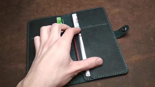 Портмоне из натуральной кожи в изумрудном цвете на 7ь отделений