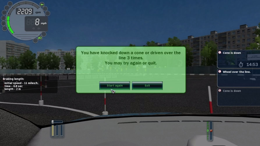 City Car Driving Track test FAILED-You knocked down the cone or wheel on the line 3 times
